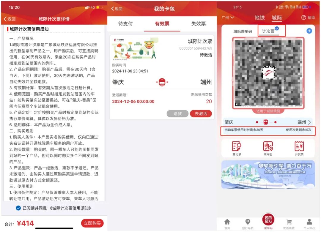 如何购买?打开广州地铁官方APP-乘车码-城际乘车码,点击右上角“+”即可按提示购买,也可点选右下角“卡包”-“去购买”进行购买。两种优惠票仅向已在广州地铁官方APP通过实名认证并开通城际乘车服务的用户开放,优惠票仅限本人使用。