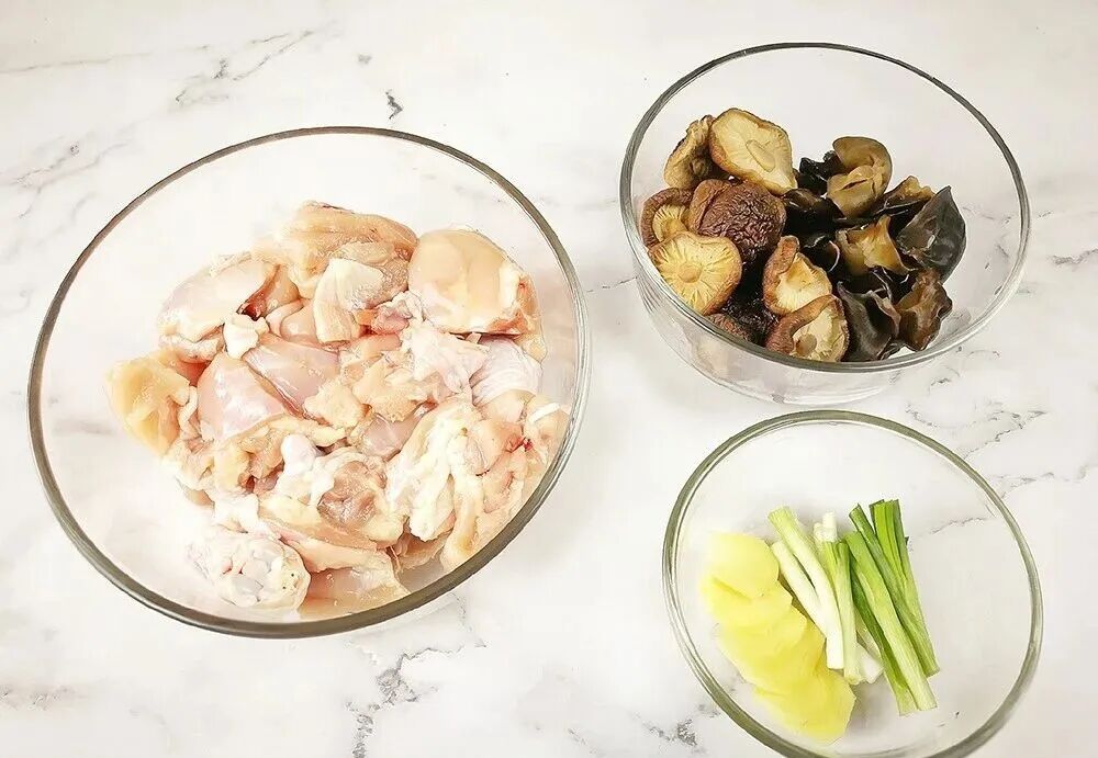 今天和大家分享一个香菇木耳蒸鸡,原汁原味,香而不腻,口口留香,做法简单,蒸一蒸就能上桌。 香菇木耳蒸鸡制作方法 【食材】:鸡腿肉300克,干香菇30克,黑木耳20克,生姜5克,香葱段5克。 【用料】:生抽10克,料酒2克,白胡椒粉1克,白糖1克,香油1克,盐适量。 第一步,鸡腿肉洗净切1厘米大小的块,干香菇和黑木耳分别泡好,黑木耳择去根蒂和干香菇一起洗净沥干水分,香葱段切小段,生姜切片。 第二步,锅中倒入适量水用大火烧开,放入鸡肉块焯上3分钟,用勺子撇去浮沫后捞出,清洗沥干水分。 第三步,洗净的鸡肉块放大碗中,加入香葱段,姜片,生抽,料酒,白胡椒粉,白糖,香油以及适量盐,用筷子搅匀后盖上保鲜膜放入冰箱冷藏20分钟,使鸡肉块腌入味。(这一步最关键) 第四步,取出腌好的鸡肉块放到平盘子里,上面加干香菇和黑木耳,一起放入烧开的蒸锅里,用大火蒸上20分钟,使所有食材断生。 第五步,关火,取出蒸好的食材,再倒入大一点的碗里,用筷子搅拌均匀,装入备好的盘子里即可。 小贴士: 1,鸡肉事先过沸水焯掉浮沫,可去除一部分鸡肉腥味,再加入其他用料进行腌制即可。 2,腌制鸡肉时,最好能放入冰箱,可以加快鸡肉入味,避免与冰箱其他食材串味,要盖上保鲜膜为好。 3,蒸的时候,期间要揭盖用筷子把食材进行上下翻面,这样食材受热均匀,入味也比较足。