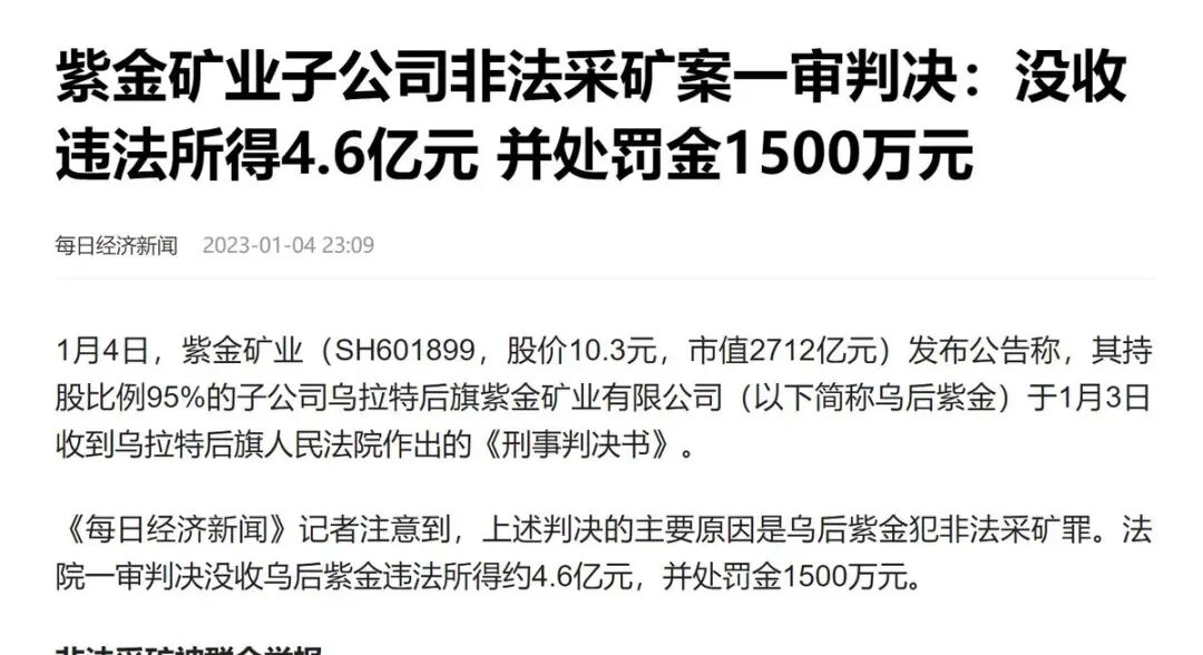 更为严重的是,曾经的负面事件依然在影响着紫金矿业的声誉。乌拉特后旗紫金矿业公司因非法采矿被判刑,并处以1500万元巨额罚款,给公司带来了法律和声誉的双重压力。