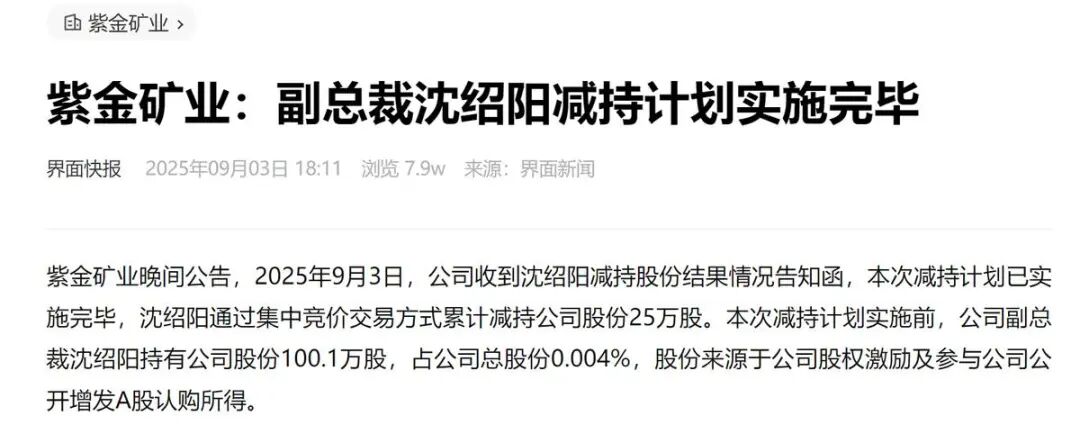 此外,资本市场的反应也是一个隐忧。2024年紫金矿业副总裁累计减持25万股份,这让市场对其未来成长性的担忧。