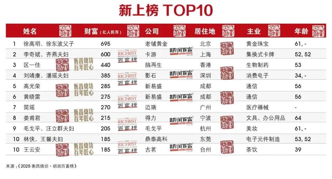 以下为《2025衡昌烧坊·胡润百富榜》前100名: (本文不构成任何投资建议,据此操作风险自担) 来源:红星新闻、如有侵权请联系删除
