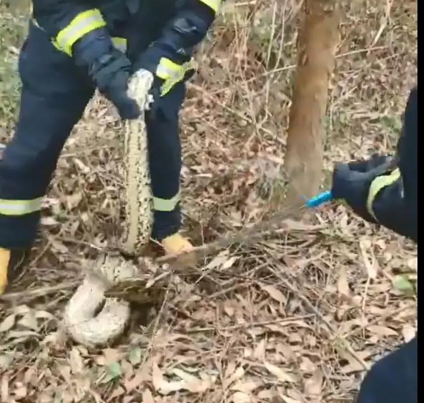 喂,是消防队吗? 我们这里养殖场有一条大蛇, 非常吓人, 快来帮忙啊!” 12月25日13时许, 在清远市清城区龙塘镇 叁加汽车站附近, 一村民养殖场附近出现一条大蛇, 市民立即报警请求消防队帮忙。 接到报警后, 当地消防救援站立即出动 1辆消防车赶赴现场处置。 救援人员到现场后, 经询问报警人得知 他在养殖场附近清理杂草时, 发现有一条蛇躺在草丛上, 不确定蛇是否有毒, 自己不敢轻易处置, 于是立刻报警求助。 指挥员观察该蛇是一条大蟒蛇, 身长约2米, 腰围约10厘米, 重量大约有40斤重, 还时不时发出“咝咝”的声音, 十分吓人。 根据现场情况, 指挥员立即安排两名指战员 穿戴个人防护装备, 将四周杂物小心移开, 用扑蛇器夹住蟒蛇的“七寸”位置, 控制住蟒蛇的头部, 迅速将蟒蛇放进事先准备好的编织袋中, 带离现场。 目前, 已转交蟒蛇给相关部门放归自然。 如果在家或者野外发现蛇,不要擅自捕捉或追打,以免造成不必要的人身伤害,应第一时间拨打119报警电话求助,消防救援人员会第一时间到场进行处置。 来源:信息时报 |
