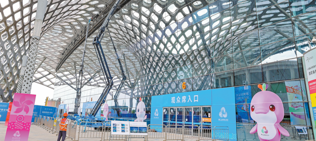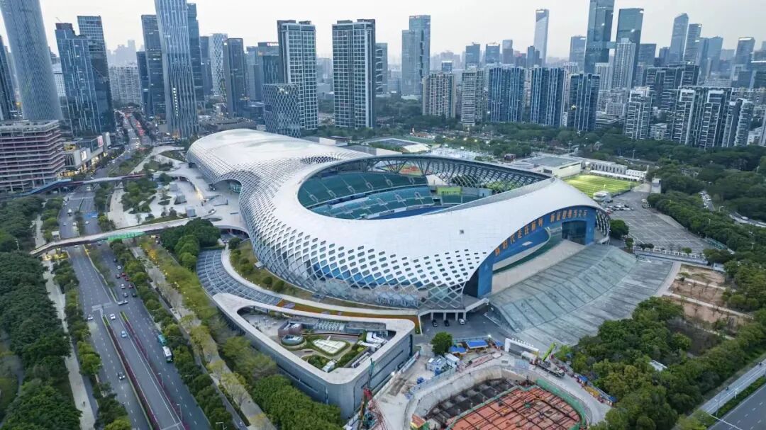 以“春茧”造型闻名的深圳湾体育中心,则向采访团展现了科技与绿色融合的另一种可能。据现场南山区赛委会有关负责人介绍,该场馆升级改造以“近零碳建筑”为目标,光伏建筑一体化技术成为最大亮点。场馆外立面的光伏玻璃既满足采光需求,又能将太阳能转化为电能,与智慧能源管理平台形成闭环,通过AI节能模式实现设备能耗的精细化管控。“我们打造了‘圳智慧’VOC数字孪生平台,结合开鸿技术实现鸿蒙物联场景联动。”工作人员通过移动端即可远程调控灯光、空调等设备,赛事期间的场地照明、扩声系统均已升级至国际顶级赛事标准,全新铺设的FIBA认证运动木地板为运动员提供专业保障。