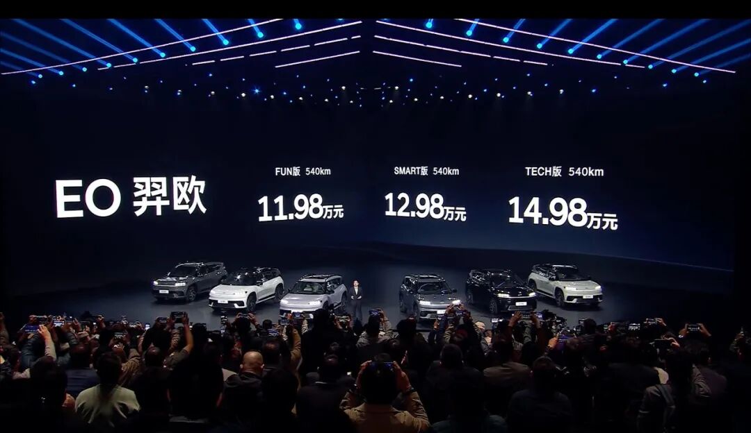 10月29日北京现代EO羿欧正式上市,新车共推出3款车型,分别是FUN版 540km、SMART版 540km、TECH版 540km,售价区间11.98-14.98万。