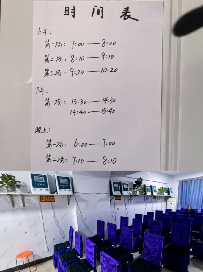 为了解真相,10月27日下午,贝壳财经记者根据周女士提供的线索,暗访了她爷爷经常光顾的位于上海金山区的两家“养生课堂”。这两家店均选址于城乡接合部,挂着“健康养生”的招牌,保持着高强度的活动频率,每日开设多达五至六场所谓的“养生课程”,每场耗时约一小时。
