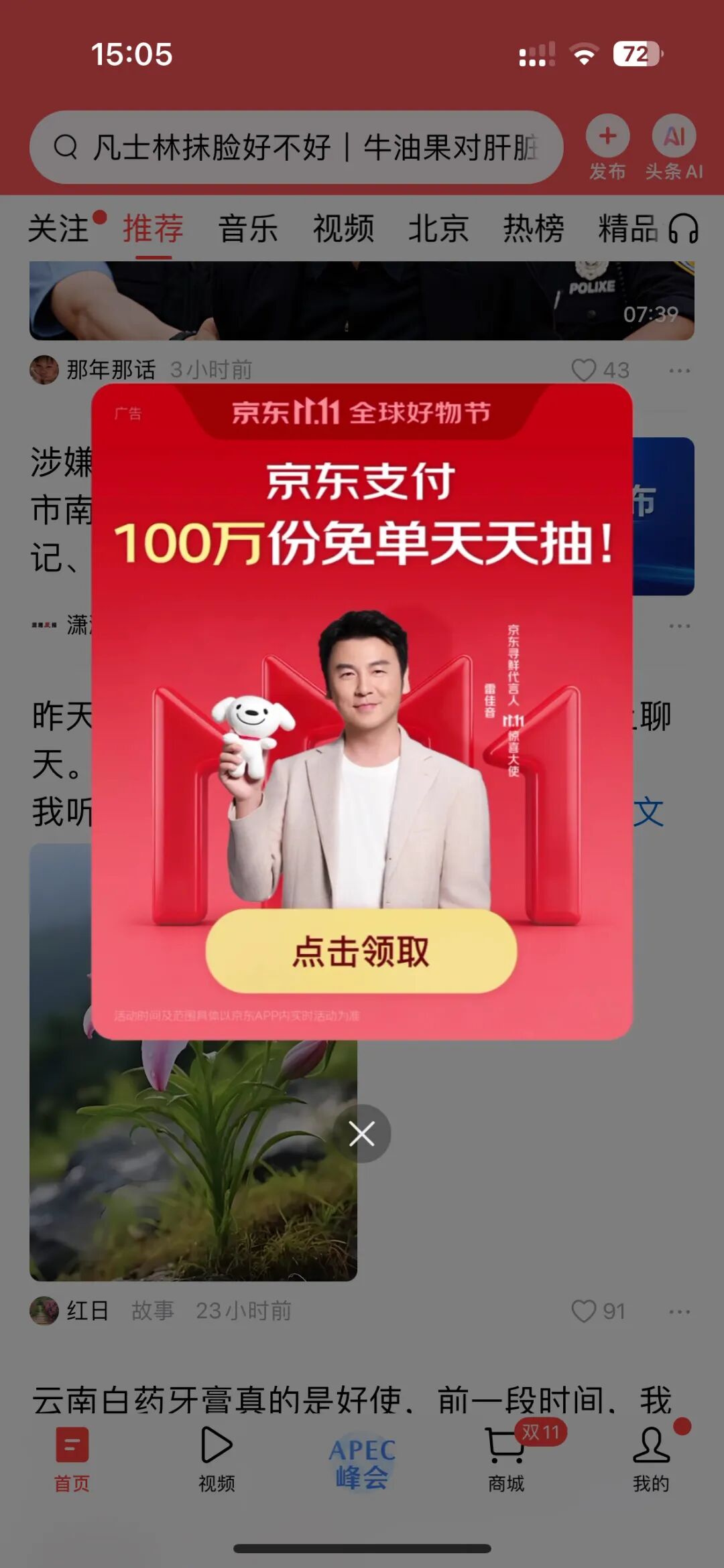 而对抖音的恨可能也成为了刘强东今年一系列公关动作的发端。今年,一方面,京东对抖音开启了全面防守,但另一方面,为了拉新和流量,京东又不得不在抖音上投放大量的广告。讽刺的是,即便是京东这次暗指抖音操纵其拥有的媒体,但打开抖音集团旗下的今日头条,开屏依然是京东的巨幅广告。