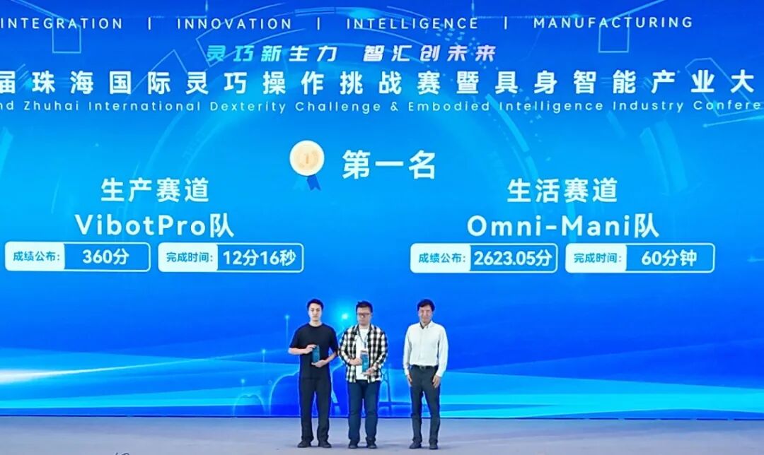 此次灵巧操作挑战赛中,生产赛道对标工业装配场景,要求参赛机器人在限定时间内完成多种工件的识别、抓取、组装与快速重构等任务。经过激烈角逐,VibotPro队凭借全自主操作的高效表现拔得头筹,得心应手队、智装灵控战队紧随其后,分获亚军、季军。