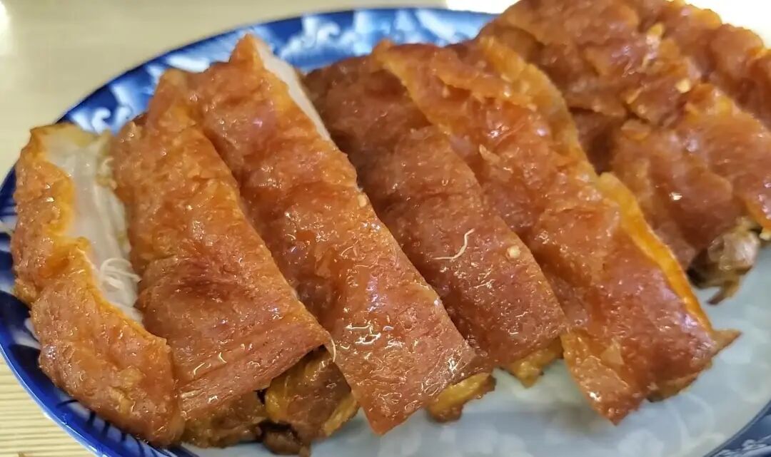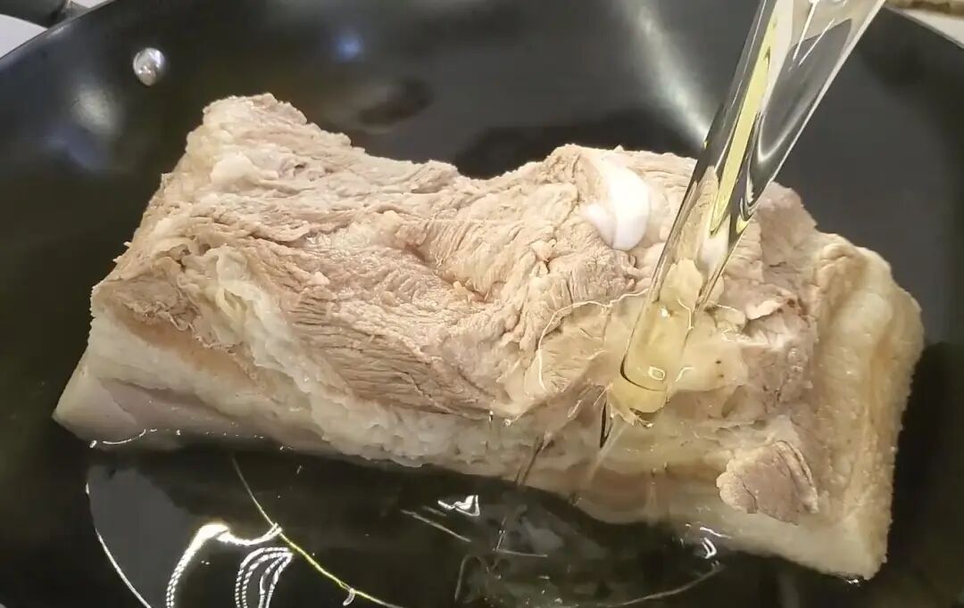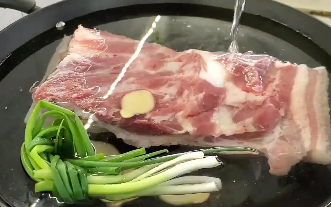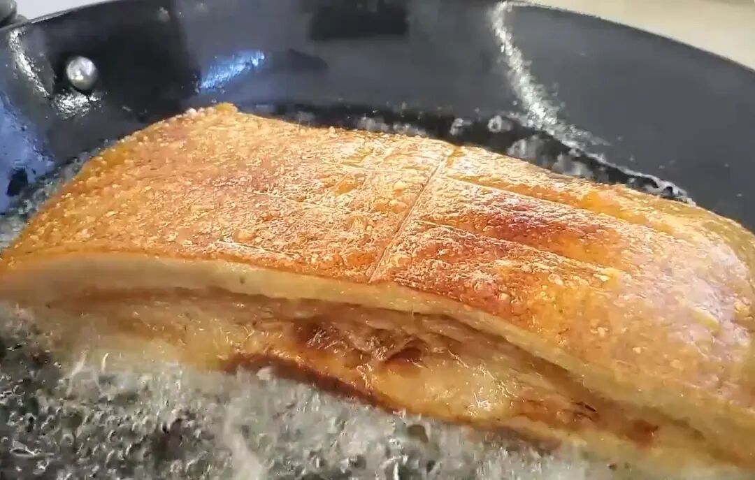 今天给大家分享一个五花肉的新吃法,这样做出来的五花肉香味扑鼻,非常的软烂而且一点也不油腻,比红烧肉还要好吃。 做法: 1,准备好一块肥瘦相间的五花肉清洗干净冷水下锅,加入姜片,葱结,一勺米酒去腥,大火烧开撇去浮沫煮30分钟。 2,煮好的五花肉用筷子能够轻松扎透即可,捞出用餐巾纸擦干表面的水分。锅中放入一个架子把五花肉猪皮朝下放置,倒入食用油没过猪皮即可,盖上盖子小火慢炸,炸的过程要压着一点锅盖避免油溅出来。 3,锅里噼里啪啦的声音停止后把五花肉翻面,再炸上2分钟即可控油捞出。 4,炸好的五花肉把猪皮朝下放入冷水盆中浸泡2个小时。 4,准备好一点辅料:两个柠檬去籽后剁碎,一把酸梅去籽后剁碎,糖蒜半头去皮后剁成蒜末,一块生姜剁成末,一起装入碗中备用。 5,两个小时后我们可以清晰的看到五花肉皮变的褶皱,有点像虎皮特备的漂亮,再把五花肉切成一厘米宽的小块,但是猪皮不要切断。 6,炒一个糖色:锅中倒入少许食用油,加入一把冰糖开小火慢炒,炒成枣红色加入一碗开水。 7,把做好的糖色倒入高压锅中,加入适量的清水,把准备好的辅料倒入锅中,加入食盐,蚝油,生抽,老抽,米酒,一勺红油搅拌均匀。 8,把五花肉猪皮朝下放入高压锅中,盖上盖子大火烧开,上汽后开始计时压10分钟。 9,10分钟后把高压锅取下自然放凉,放汽后取出炖好的五花肉再次放置温热。这个时候满屋都是浓浓的肉香味,闻着都让人流口水。 10,五花肉晾至温热切成小块摆放在盘中就可以享用了,也可以再淋上炖肉的汤汁,这样做出来的五花肉香喷扑鼻,软烂不油腻,比红烧肉还好吃。