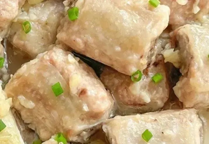 4、将腌制好的排骨均匀摆放在蒸盘上,随后冷水上锅,蒸制四十分钟至熟透。取出后撒上葱花进行装饰,即可上桌享用。