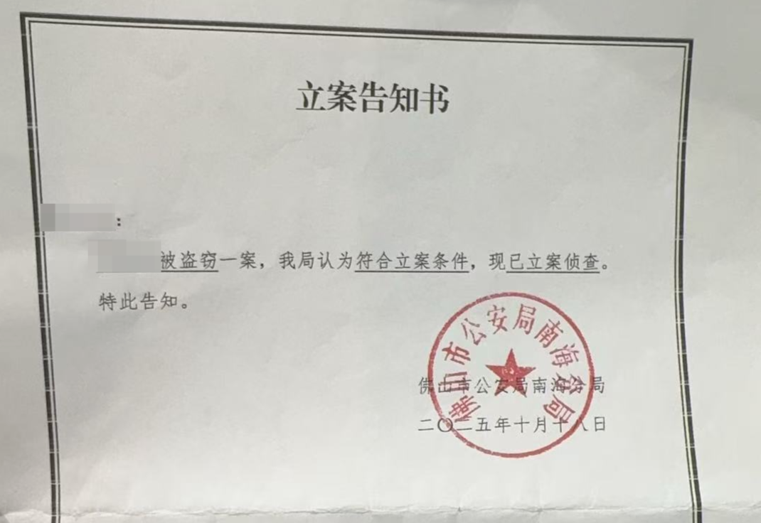 黄女士认为,手镯在运输途中遭到了偷窃,于是向警方报案。佛山市公安局南海分局平洲派出所的报警回执显示,9月18日上午10时56分,黄女士向公安机关报警。佛山市公安局南海分局的立案告知书显示,黄女士被盗窃一案,警方认为符合立案条件,已立案侦查,落款日期为10月18日。 据黄女士自述,由于其没有购买保价服务,顺丰方面表示最多只能赔付800元。 据广东广播电视台“DV现场”报道,涉案寄件站点负责人表示,黄女士的包裹确实不见了,“确实也是我们的责任”,“这个事情我们自己内部还在调查,还没有确定最终是在哪一个环节(出问题)”。其表示,公司总部已联系当地派出所。而对于理赔价值,双方还在协商中。 11月3日,红星新闻记者从平洲派出所了解到,该案已立案侦查。 来源:红星新闻、如有侵权请联系删除