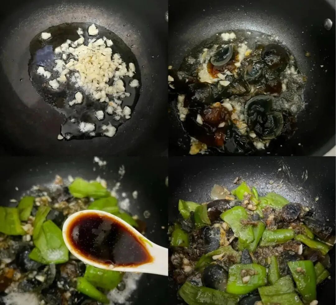 空锅放入青椒煸炒