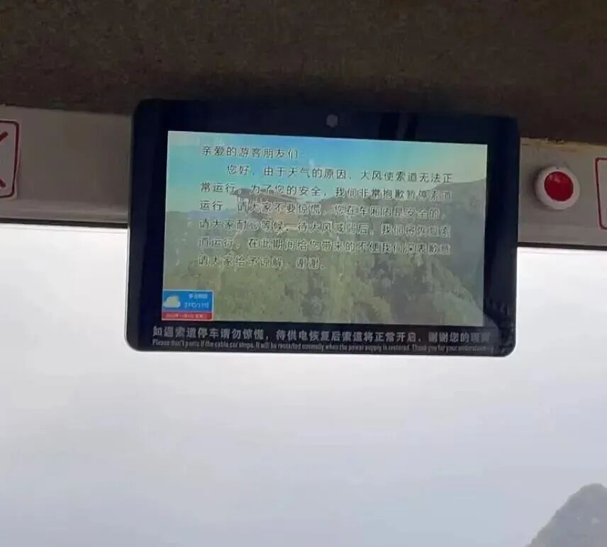 缆车内的显示屏