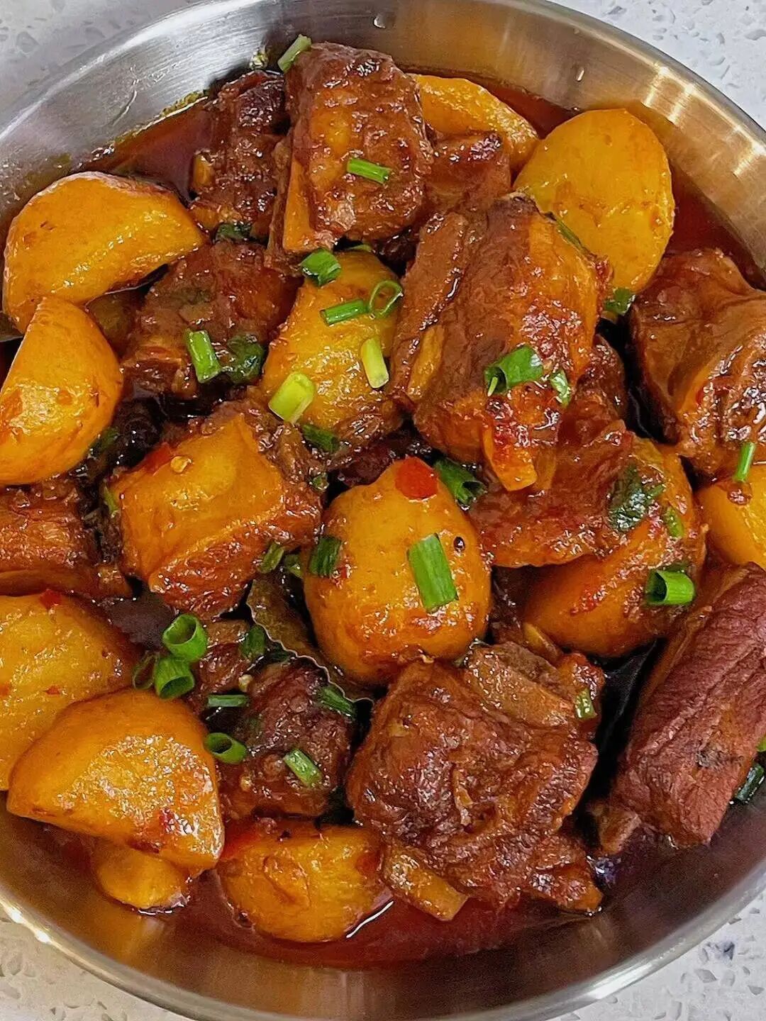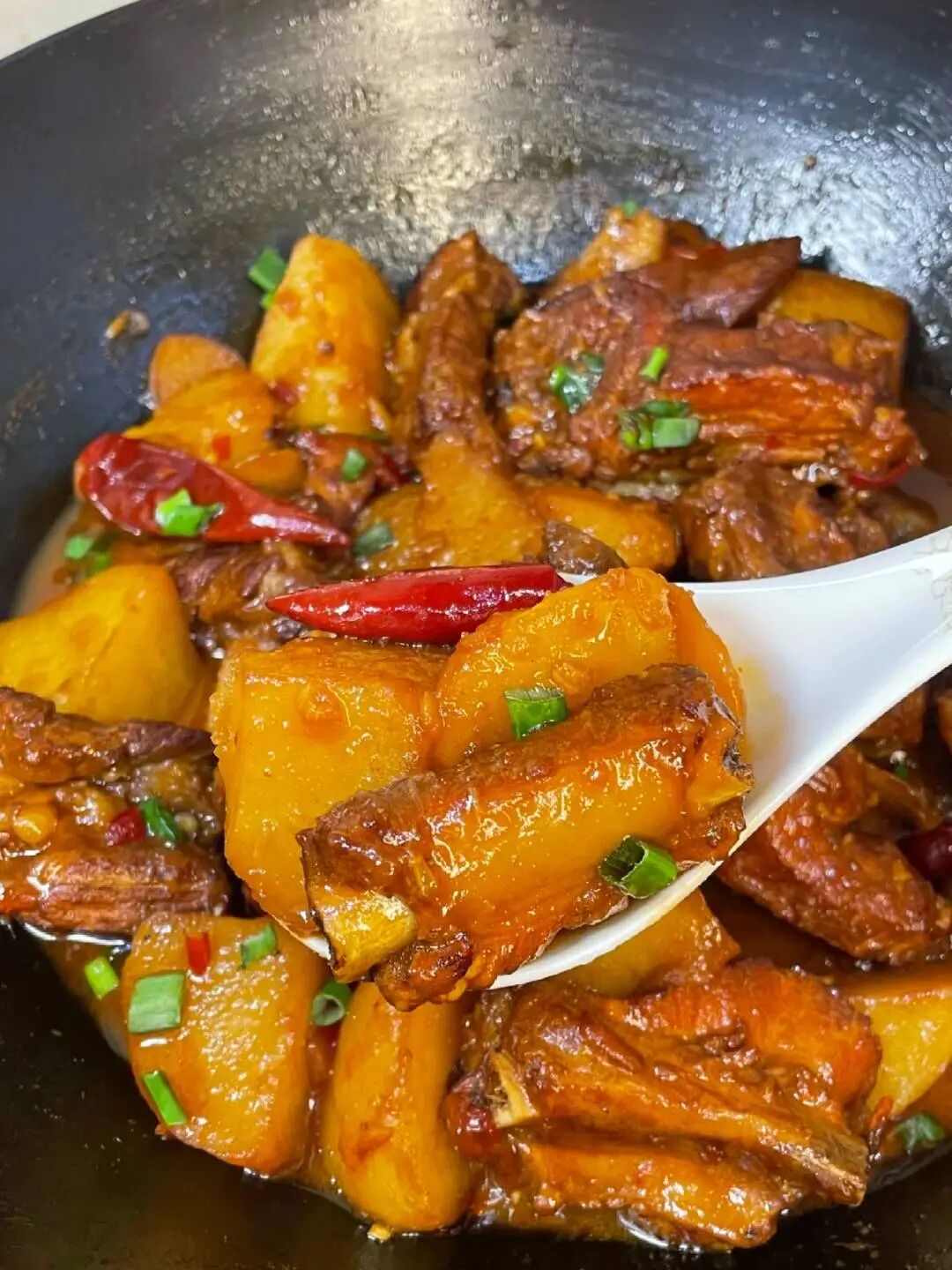 今天又做土豆烧排骨啊?"放学推开门,闻着空气里飘着的糖香混着肉香,我书包都没放就钻进了厨房。妈妈系着那条洗得发白的蓝布围裙,正用锅铲翻动着砂锅里咕嘟冒泡的排骨,金黄的土豆块裹着酱汁,在热气里泛着油亮的光。 这道菜在我家餐桌上霸占了二十年地位,秘诀就藏在妈妈那本泛黄的笔记本里——那是外婆手写的菜谱,边角还沾着当年灶台上的油星子。小时候总以为天下妈妈都会做这道菜,直到住校后尝遍食堂,才懂这锅黏糊糊的土豆烧排骨,藏着多少代人传下来的生活智慧。 第一步,食材准备:少即是多 妈妈总说:"做菜如做人,实在点好。"主料只需三样:排骨500克(选带点肥的肋排最香)、土豆2个(要面甜的黄心土豆)、冰糖15颗。调料更简单:姜3片、八角1颗、生抽2勺、老抽半勺,连盐都不用另加——生抽的咸鲜已经足够。 小技巧:土豆切滚刀块后泡在水里,既能防止氧化变黑,又能洗去多余淀粉,烧出来更清爽。 第二步,炒糖色:厨房里的魔法时刻 "看好了啊,这步是灵魂。"妈妈把锅烧得冒青烟才倒油,转小火后撒入冰糖。随着温度升高,冰糖逐渐化作琥珀色的糖浆,像融化的蜂蜜般在锅底流淌。这时候要眼疾手快,把焯过水的排骨倒进去,"滋啦"一声,糖色瞬间裹满每块肉。 关键点:糖色不能炒过头,变成焦黑就会发苦。妈妈教我的诀窍是观察气泡——刚开始是小泡,等变成大泡且颜色转深时,立刻下肉最保险。 第三步,慢火炖煮:时间的馈赠 加入姜片、八角炒出香味后,倒进没过排骨的热水(一定是热水!冷肉遇冷水会收缩变硬)。这时候该调酱汁了:2勺生抽提鲜,半勺老抽上色,不用再加盐。大火烧开后转小火,盖上锅盖焖20分钟。 "土豆要后放,不然都成泥了。"妈妈说着把泡好的土豆块倒进锅里,用锅铲轻轻翻动让每块都沾上酱汁。再焖15分钟,开盖时满屋都是混合着肉香的甜味。 进阶技巧:想让汤汁更浓稠?最后5分钟可以开大火收汁,用锅铲背面轻压土豆,让它们自然释放淀粉。看着酱汁变成能挂在勺子上的浓浆,这锅菜就成了。 "趁热吃!"妈妈把砂锅直接端上桌,热气腾腾中,排骨轻轻一咬就脱骨,土豆吸饱了肉汁,用筷子一夹就碎成沙。最绝的是那层黏糊糊的酱汁,拌进米饭里能多吃半碗。 上周带同事回家吃饭,平时嚷着减肥的小王连扒三碗饭:"阿姨,这菜是不是放了什么秘方?"妈妈笑着给他盛汤:"哪有什么秘方,不过是把爱都炖进锅里了。" 如今我自己成家,第一次做土豆烧排骨时,手机里存着妈妈发来的语音:"火别太大,糖色看气泡,土豆后放..."锅盖掀开的瞬间,恍惚又看见妈妈站在灶台前,围裙上沾着面粉,手里握着那把用了二十年的木锅铲。 这道菜最动人的地方,大概就在于它从不刻意追求完美。有时候土豆煮得太烂,有时候糖色稍深,但正是这些不完美的小细节,让每锅菜都带着独家的温度。就像妈妈常说的:"家常菜嘛,就是要吃得热乎,吃得开心。" 下次回家,记得给妈妈一个拥抱——她可能又站在灶台前,为你炖着一锅等待归来的温暖。 来源:各地美食、如有侵权请联系删除