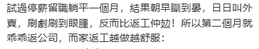 但他却解释说,曾经试过“停薪留职躺平”一个月,结果过得并不开心。