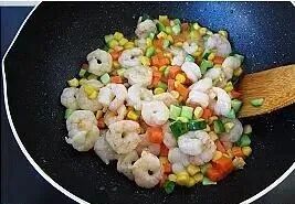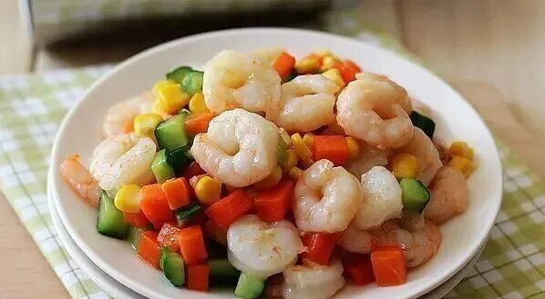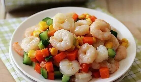 【三色炒虾仁】主料:虾仁、黄瓜、胡萝卜。辅料:油、盐、白酒、淀粉、玉米粒。做法:1、首先把虾去掉内脏,也就是虾线洗干净,最好是新鲜的虾会更好吃,放一个大碗里后加入盐和白酒搅拌均匀,腌制20分钟后备用。 2、把腌制好的虾再加2勺淀粉抓均匀后,把胡萝卜去皮洗净后切成丁,把黄瓜也洗净切丁,玉米粒准备好。 3、锅中入多一些油,把腌制好虾倒入锅中翻炒,变色了以后就可以盛出备用。 4、另起锅加少量的油,把胡萝卜丁和黄瓜丁还有玉米粒一起倒入锅翻炒熟。 5、然后再加入炒好的虾一起炒,翻炒均,前面腌制虾时以经加盐就不用在加了,如果大家觉得盐不够,也可以少量再加上点,炒好以后就可以出锅装盘了。 6、装盘可以开吃了。