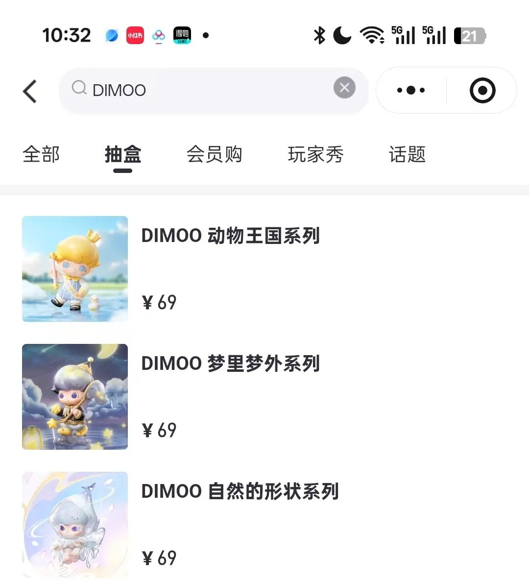 DIMOO是由中国设计师Ayan Deng(邓瞻)创作的IP,目前该IP已被泡泡玛特收购成为其自有IP。DIMOO是一个闯入梦境的小男孩,头顶住着一位由云朵化成的“云宝宝”。