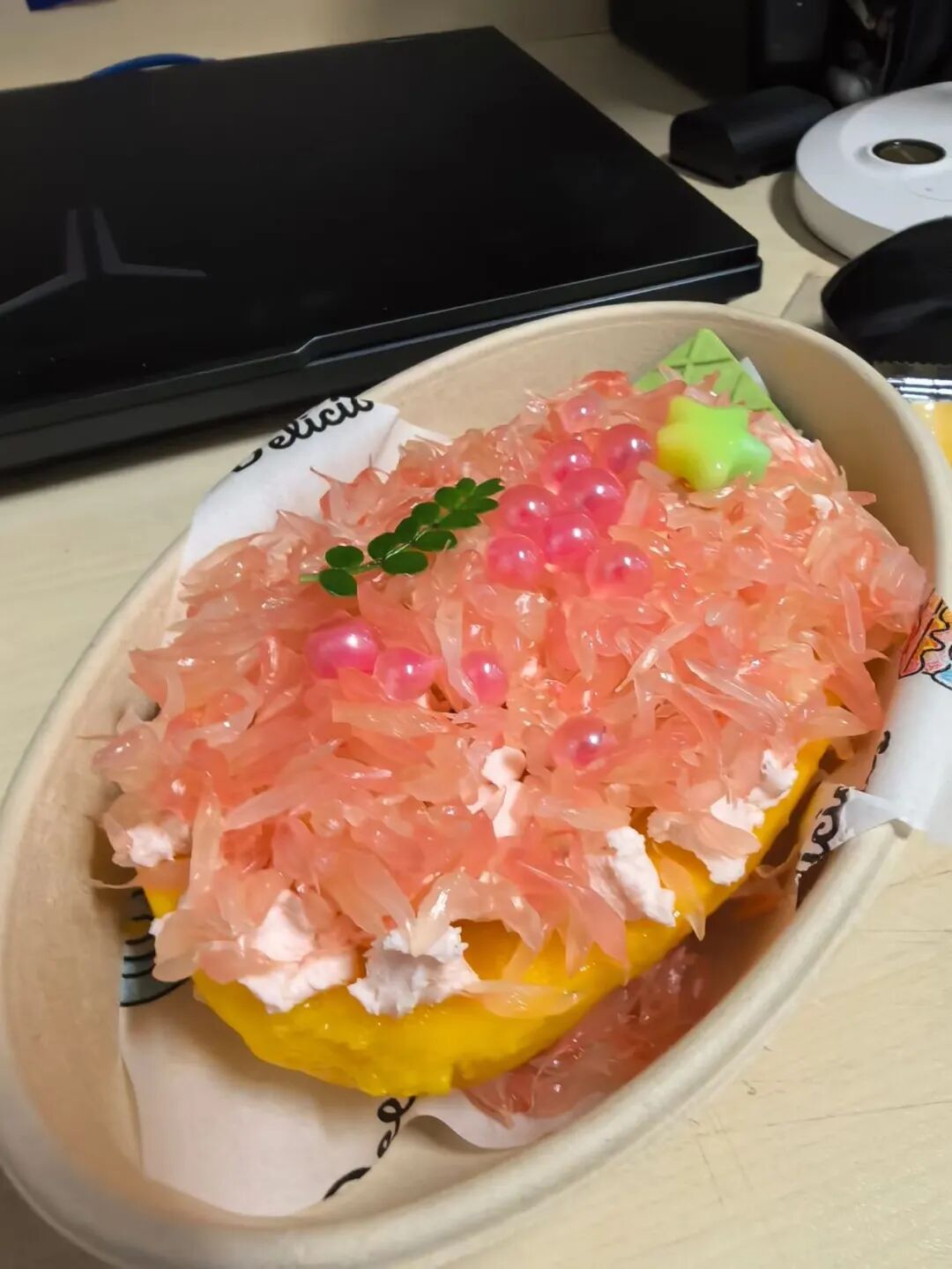 蛋糕店内制作的固体杨枝甘露样品。受访者供图