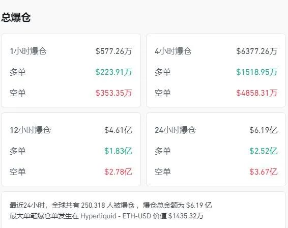 比特币一度再次失守10万美元整数关口。加密货币市场全网24小时,超25万人爆仓,6.19亿美元(约合人民币44亿元)蒸发。