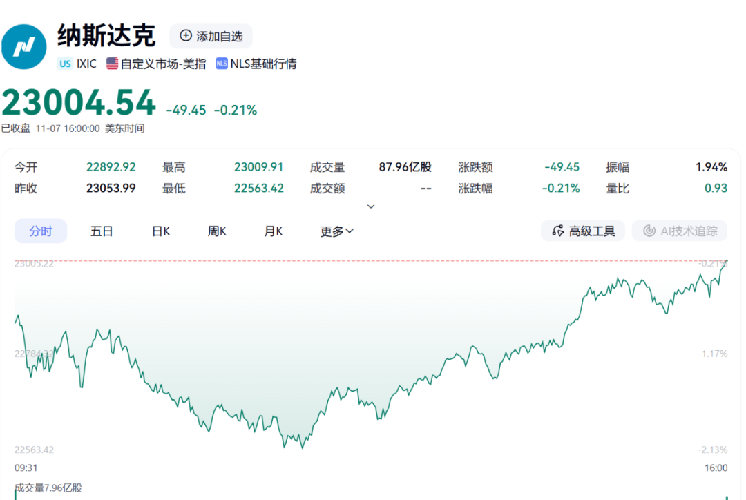 截至收盘,纳指跌0.21%,本周累跌3.04%;标普500指数涨0.13%,本周累跌1.63%;道指涨0.16%,本周累跌1.21%。