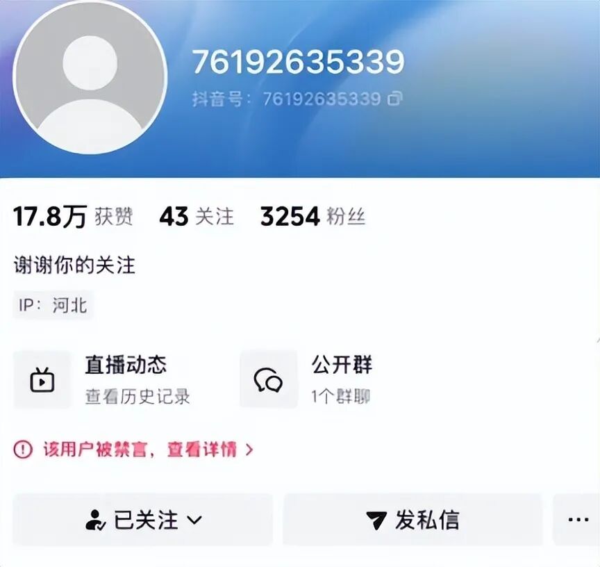 7日17时许,记者查看发现涉事女主播账号被禁言,账号名称、作品均不再显示。