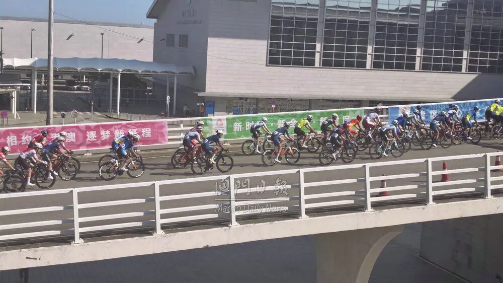 104名参赛选手陆续经北安码头赛段进入澳门大桥赛段。30余名澳门赛区志愿者化身现场“能量担当”,在赛道侧挥舞国旗、区旗与加油标语,为参赛车手倾力助阵。