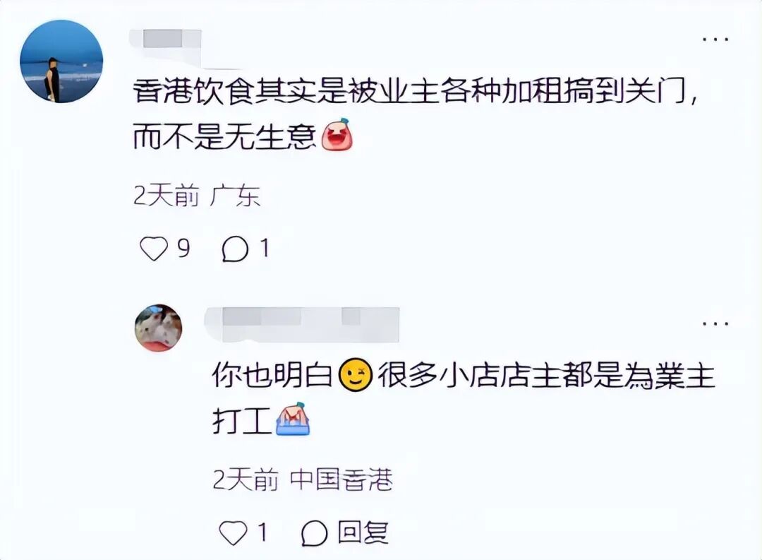 其中就有网友说道,“香港饮食其实是被业主各种加租搞到关门,而不是无生意。”