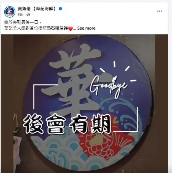 “终于去到最后一日,华记仝人感谢各位街坊熟客嘅爱护,我地下一个章节再见”。