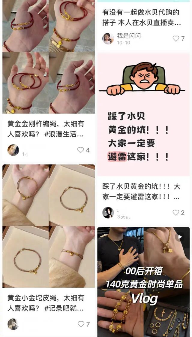 黄金饰品在年轻消费者中日益风靡,进一步催生了一批活跃于社交媒体的00后代购。他们善用“00后在水贝买黄金”等标签,通过展示时尚的黄金款式来精准获客。