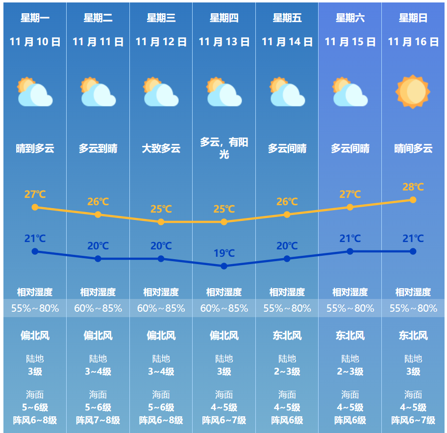 珠海七天天气预报↓