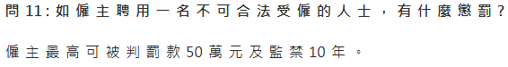 在香港,雇主雇佣黑工同样属于严重罪行。一旦定罪,最高可被罚款50万港币并监禁10年!