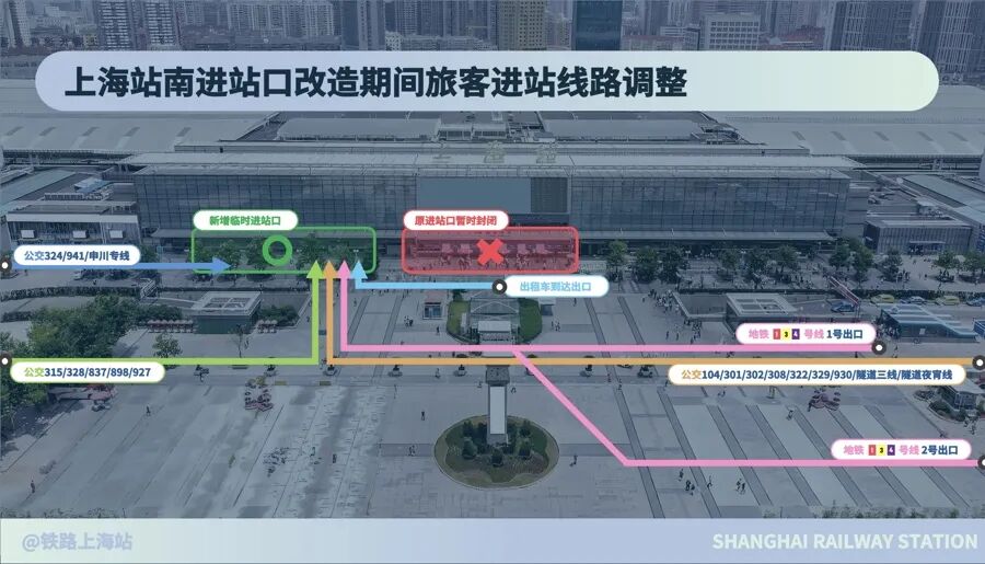 随着施工围挡安装完毕 和临时进站口启用, 上海站南进站口升级改造工程 将于11月11日全面启动。