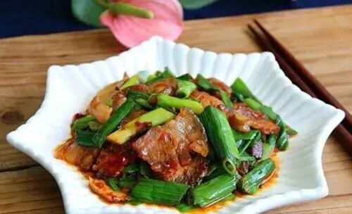 川菜回锅肉的家常做法,肉香嫩不油腻,是家常下饭必选,用料和制作步骤都非常简单。今天给大家介绍川菜中的回锅肉。 回锅,顾名思义,就是这块肉不像我们普通菜一样,只下一次锅,它含有多次烹调的意思。最讲究的是下锅的这块肉,它要求是后腿二刀肉或者叫猪后臀肉,不然炒不出回锅肉的香味。 【青蒜回锅肉】准备食材:猪带皮臀尖1块300克、青蒜苗100克、姜1块、大葱1根、花椒10粒、油1汤匙、郫县豆瓣酱1汤匙、豆豉1茶匙、白砂糖1茶匙、醋1茶匙、酱油1茶匙、料酒2汤匙、蒜2瓣。 制作过程:准备好所有食材,葱姜洗净,姜切成片,大葱切段。将买回的臀尖肉洗净,冷水下锅,放大葱段、花椒、一半姜片,淋入部分料酒大火煮开,撇去浮沫,转中小火煮20-30分钟左右。煮至筷子可以轻松捅穿猪皮,关火,静置,留在汤里。 等肉自然冷却至常温,取出切成薄片。青蒜去老皮、黄叶,将其洗净;葱白拍松,斜刀切段,蒜叶改直刀,切段;蒜切末、姜切小片,郫县豆瓣酱剁碎。炒锅内放油和肉片小火煸炒,炒至肥肉吐油,肉片卷缩,颜色微黄。下入蒜末、豆瓣酱、豆豉、剩余姜片炒香,炒至红油颜色油亮变红,肉片上色。放入酱油、白糖、醋、剩余料酒炒入味,下蒜叶和蒜白段炒匀即可。 友情提示:煮好的肉放在汤里自然冷却,肉保持水分,瘦肉煸炒后不枯不柴。如时间不够,可将肉取出冲凉,擦干水分再切,以免煸炒时爆锅。