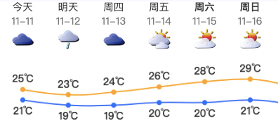 具体到深圳天气,11-12日阴天有小雨,东部沿海及高地最大阵风8-9级,气温逐日下降,天气转凉明显,最低温19℃;13日风力减弱,云量较多;展望14-15日多云到晴天,气温逐步回升,空气干燥。