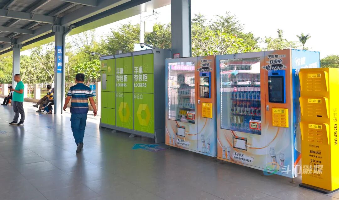 站内的寄存柜、售卖机、充电宝等便民措施也一应俱全。