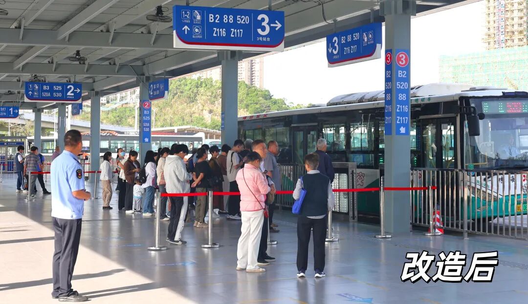 改造后,作为珠海市东西部公共交通核心换乘点,这座这座日均发车超1000班次、日均客流量超3万人次的公交换乘站点,实现从“人车混行”到“有序分流”的蜕变。