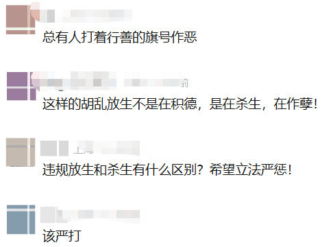 此外,上海市农业农村委2023年7月3日发布的《上海市公共水域放生活动技术指引》明确,严禁放生外来种、杂交种、选育种及其他不符合生态要求的水生物种。对违反规定的放生行为予以劝阻、制止,对拒不改正造成严重后果的,依照《中华人民共和国长江保护法》《中华人民共和国生物安全法》《中华人民共和国渔业法》《中华人民共和国野生动物保护法》等有关法律、法规予以处罚;构成犯罪的,移送司法机关依法追究刑事责任。