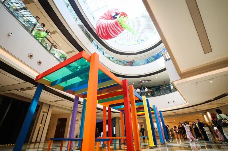 兴业太古汇布置的艺术展览,吉利克标志性的极简装置化作色彩斑斓的“社交浮岛”。海沙尔摄“上海是世界上一座独一无二、深度连接东西方的传奇城市。”LVMH大中华区总裁吴越说,百年前,爱因斯坦、卓别林从上海的“大码头”上岸,带来西方文化。梅兰芳从上海的“大码头”出发,去传播东方神韵。“今天,‘路易号’以航海文化呼应上海的码头文化,开启了一场跨越时空的文化对话。”