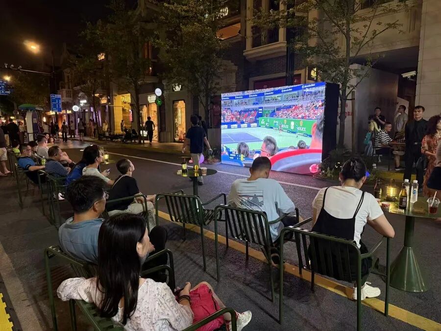 国庆假期晚间,茂名北路限时步行街露天转播上海网球大师赛。叶宇摄这种由点及面的涟漪效应,是上海所期盼的,也是上海提升商圈能级的目标。《上海市商圈能级提升三年行动方案(2024—2026年)》提出,着力打造全球一流商圈。今年,上海推出46个商圈新建和改造项目,涉及商业建筑面积超330万平方米。