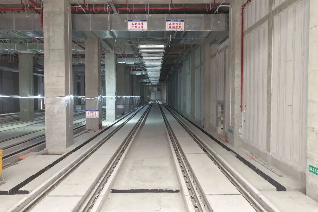 中心公园存车场轨道工程铺轨总长度达5.11公里,包含14组道岔,同时涵盖无砟整体道床和有砟道床两种形式。作为穗莞深城际前皇段的核心配套,该存车场将为线路高效运营提供关键支撑。