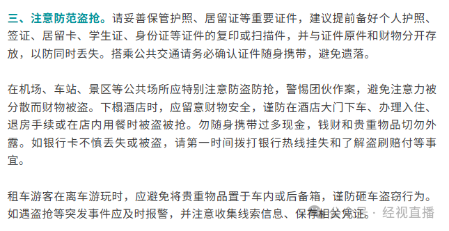 请妥善保管护照、居留证等重要证件,建议提前备好个人护照、签证、居留卡、学生证、身份证等证件的复印或扫描件,并与证件原件和财物分开存放,以防同时丢失。搭乘公共交通请务必确认证件随身携带,避免遗落。