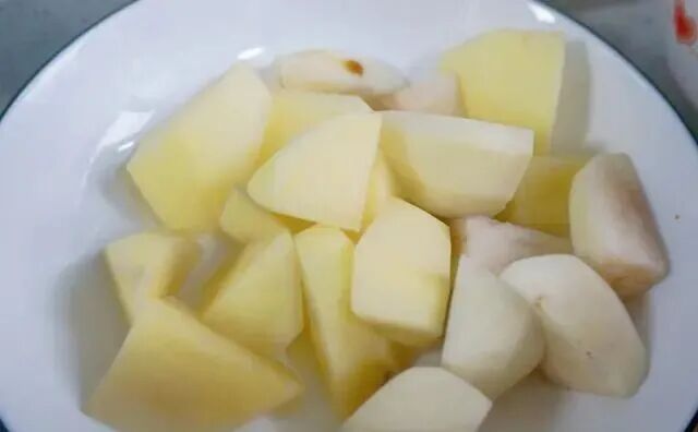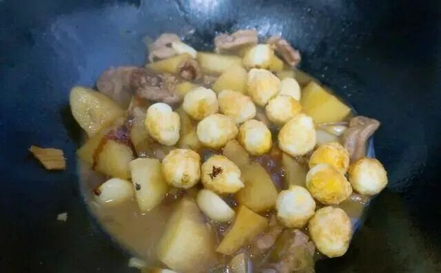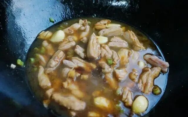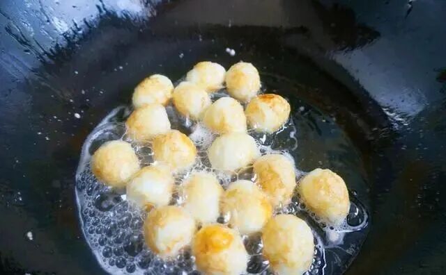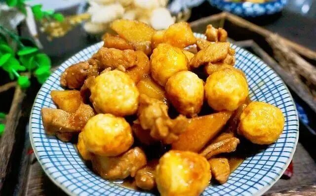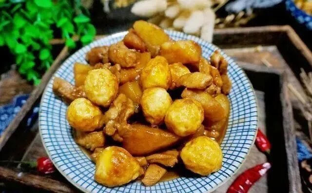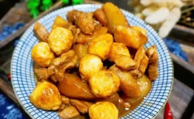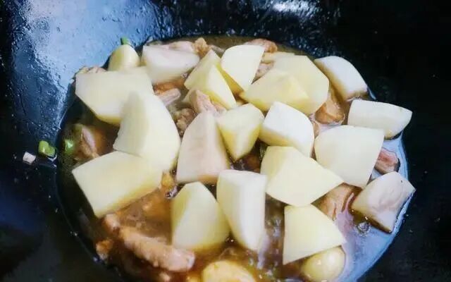 今天分享一种土豆的新吃法,土豆和这菜一起炖,做法简单,荤素暖身,简直是绝配! 所需食材: 土豆2个,鹌鹑蛋20个,猪里脊200克,盐3克,生抽2勺,酱油2勺,白糖1小勺,葱姜蒜适量 做法: 1.土豆去皮洗净切成滚刀块,猪里脊切成块备用。 2.鹌鹑蛋煮熟,放凉水中过凉后剥皮。用厨房纸巾吸去表面水分。 3.锅中放入适量的食用油,油热后倒入鹌鹑蛋,炸至表面金黄略发焦的感觉,捞出备用。 4.锅中的底油继续烧热,倒入葱姜蒜煸香。 5.倒入里脊肉煸炒至变色,加入热水,烧开。 6.倒入盐,生抽,酱油,白糖,小火慢炖15分钟。 7.倒入土豆块继续炖十分钟左右。 8.倒入炸好的鹌鹑蛋,炖至土豆成熟,收汁出锅。