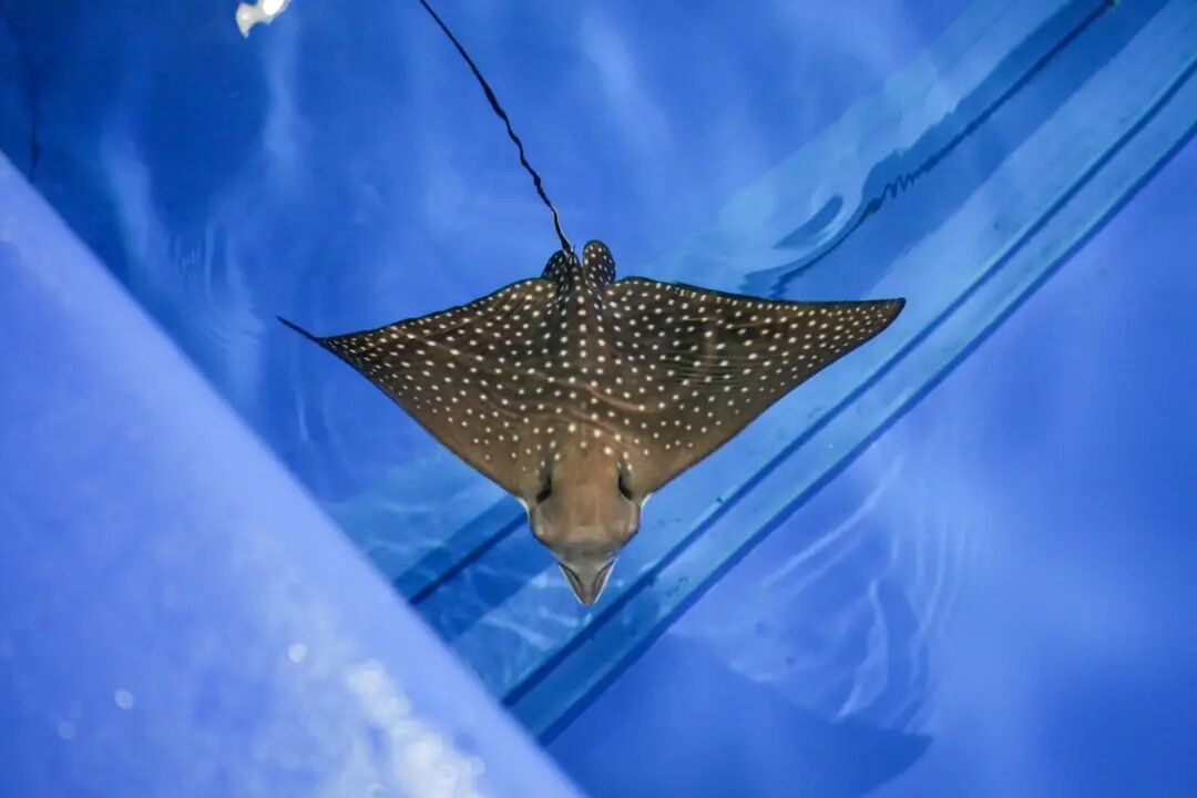 独特的扁平身躯和长长的尾巴,让这条魔鬼鱼吸引不少港人围观,甚至在社交平台上引起香港网民们的热议。