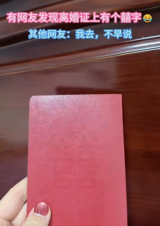 有网友手持离婚证 发现在一定角度下 能够看出证件背面有“囍”字的痕迹