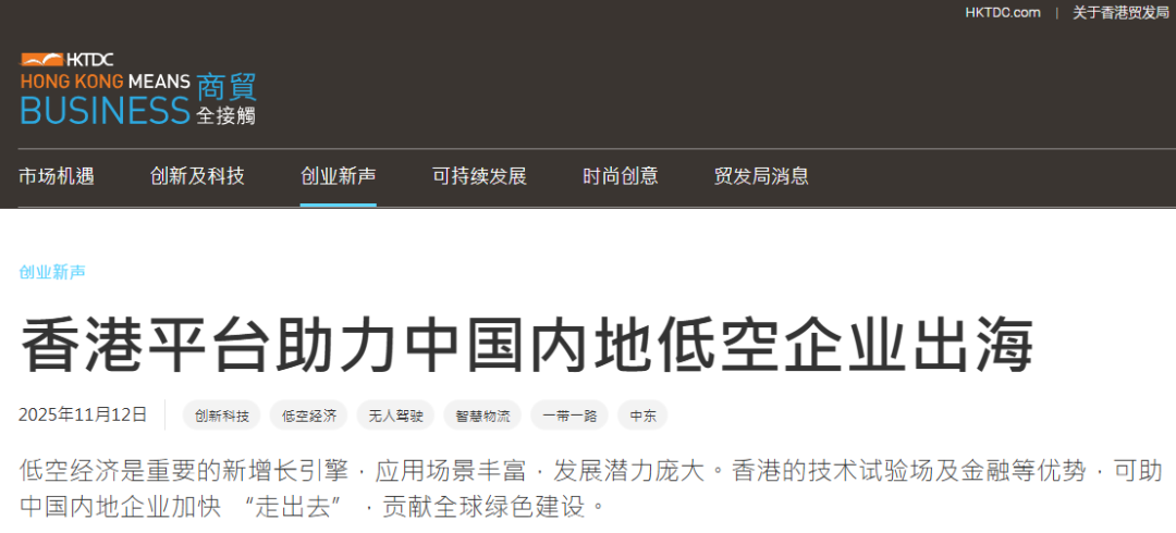 香港“内地企业出海专班” 已正式启动,通过参与香港贸发局组织的商贸代表团,企业可以接触到更广泛的国际商业网络。亿航智能就是通过香港贸发局的引荐,与中东企业建立了直接联系。