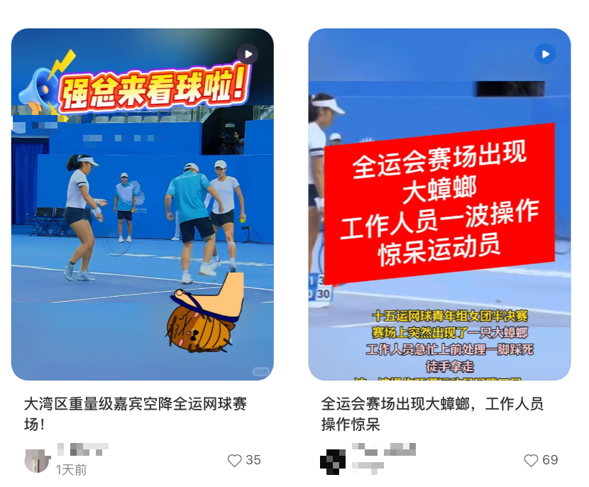 随后,有消息称“3-4厘米的大型蟑螂闯入赛场”“大蟑螂导致比赛中断”,引发热议。