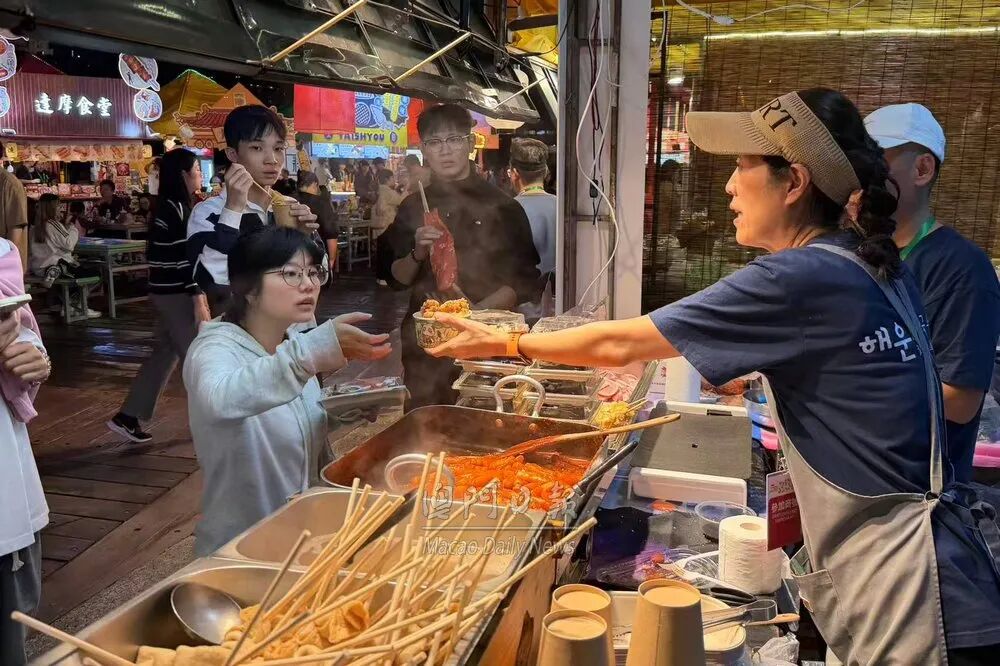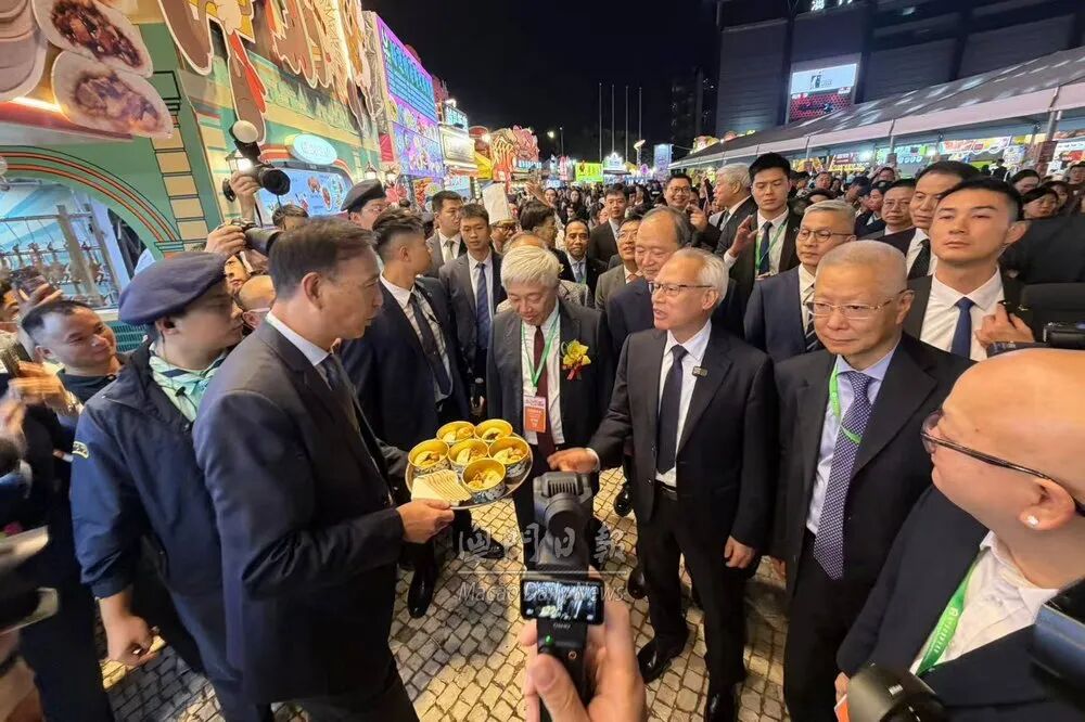 特首巡场了解参展商情况 由澳门餐饮业联合商会主办的美食节,昨晚6时假澳门西湾湖广场舞台举行开幕式。旅游局局长文绮华表示,美食节已成澳门标志性年度盛会。美食节以美食为纽带,丰富居民和旅客味蕾享受的同时,创造消费场景,促进夜间经济。澳门正踏入盛事季节高峰期,多元“旅游+盛事”全城铺开。除了美食节,现正举行的“澳门格兰披治大赛车”与澳门赛区承办十五运会的其中5项赛事,加上即将在12月登场的“澳门国际光影节”等精彩活动,共同展现“旅游+美食+体育+盛事”的跨界联动效应,推动旅游经济发展。