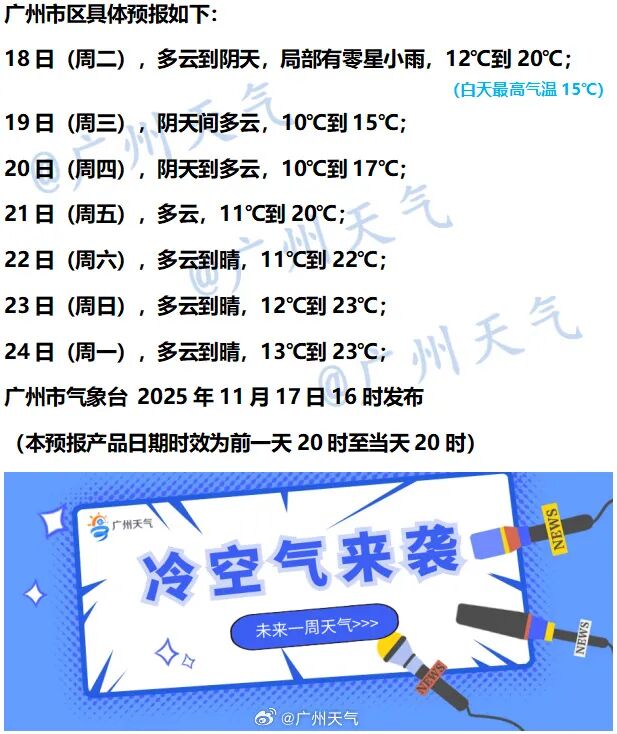 据@广州天气,周二早晨冷意显,局部有点小雨飘。