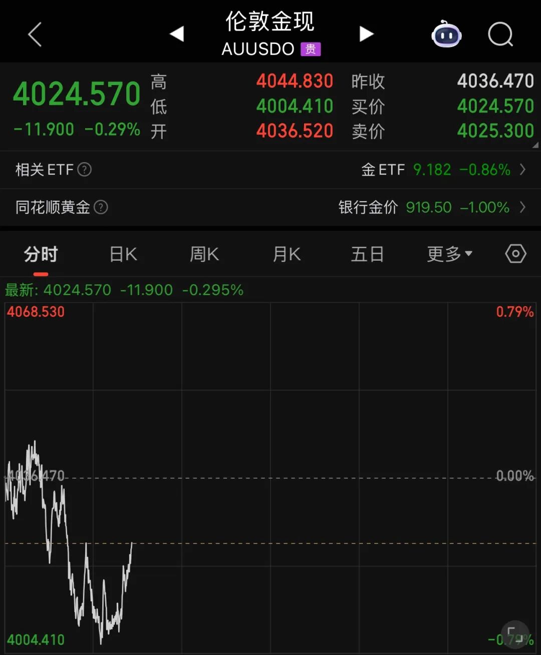 北京时间11月18日 国际金银价格开盘后跳水 伦敦现货黄金 盘中失守4030美元/盎司