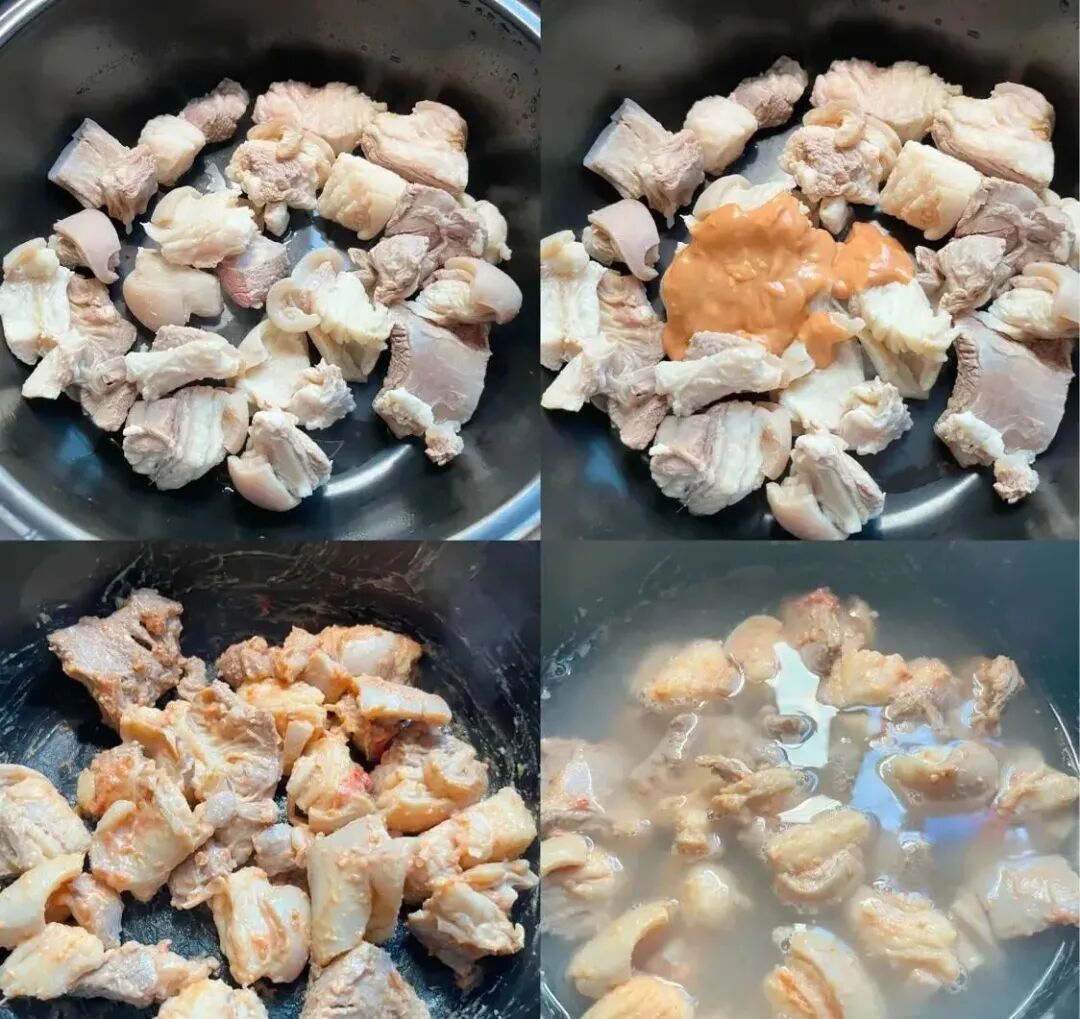 倒入羊腩翻炒出多余油脂