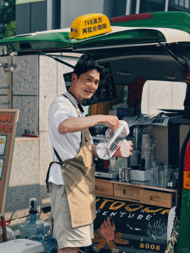 终于,在今年6月,一辆明黄色的越野车停在月湖公园门口,“TVB演员再就业咖啡”的灯牌格外亮眼。